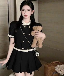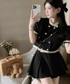 SET BỘ ĐỒ NỮ ÁO TIỂU THƯ ĐÍNH NÚT PHỐI CHÂN VÁY NGẮN XÒE BT008 – NANA FREESIZE < 53KG