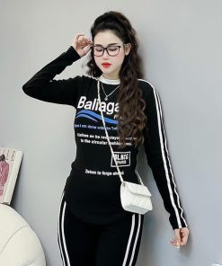 SET BỘ ĐỒ NỮ BALIAGAEM ÁO TAY DÀI VẠT BẦU MIX QUẦN PHỐI SỌC SA884 – SAM FREESIZE < 55KG