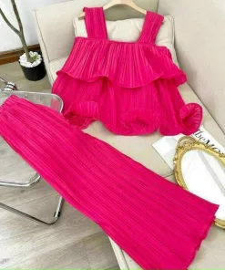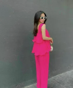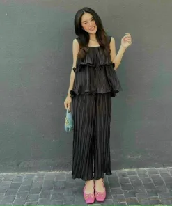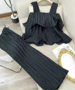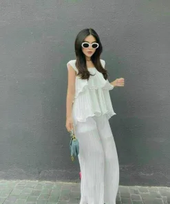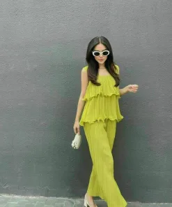 SET BỘ ĐỒ NỮ DẬP LY ÁO SÁT NÁCH QUẦN DÀI ST967 – SAM FREESIZE < 55KG