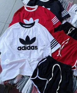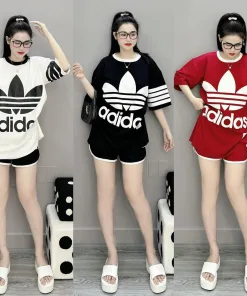 SET BỘ ĐỒ NỮ FORM NGẮN ADIDAS TAY PHỐI SỌC BT677 – NANA FREESIZE < 55KG