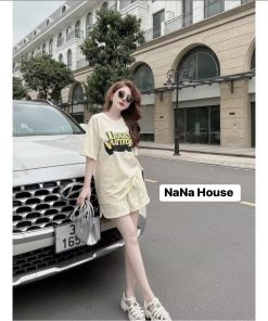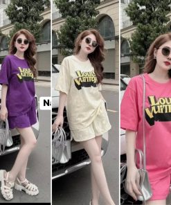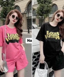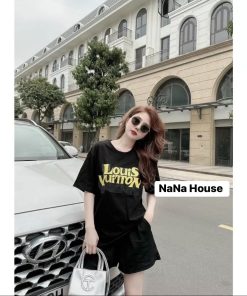 SET BỘ ĐỒ NỮ FORM NGẮN HỌA TIẾT CHỮ LOUIS VUITTON UG008 – NANA FREESIZE < 55KG