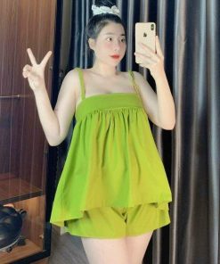 SET BỘ ĐỒ NỮ LỤA 2 DÂY FORM XÒE SA191 – SAM FREESIZE < 53KG