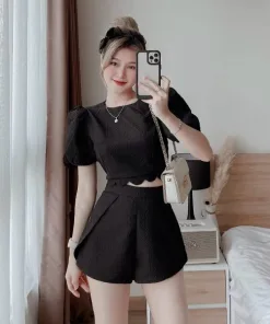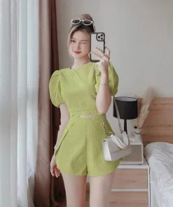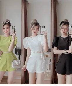 Tên sản phẩm: SET BỘ ĐỒ NỮ QUẦN SHORT + ÁO DÂY LƯNG LAI GỢN SÓNG CẮT LAZE CHẤT XỐP GÂN T354