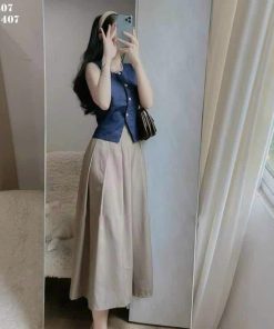 Chất liệu : ÁO DENIM – CHÂN VÁY TUYẾT MƯA
