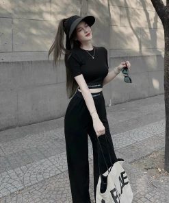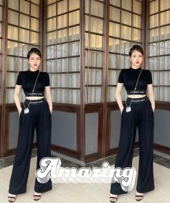 SET BỘ ĐỒ NỮ THUN DẺO ÁO CROTOP MIX QUẦN ỐNG SUÔNG DÀI SA143 – SAM FREESIZE < 55KG