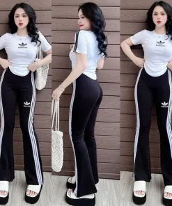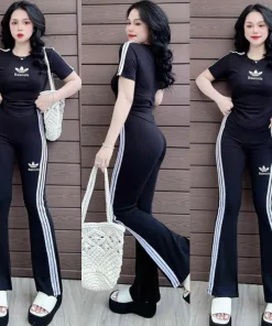 SET BỘ ĐỒ NỮ THUN TĂM BELENCIA ÁO CROTOP PHỐI QUẦN DÀI ỐNG LOE SA760 -SAM FREESIZE < 55KG