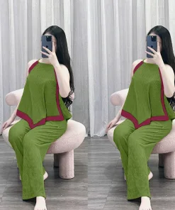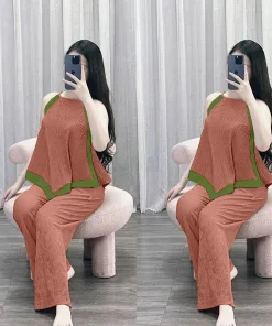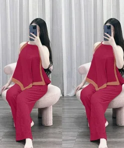 SET BỘ ĐỒ NỮ THUN XỐP ÁO CỔ YẾM VIỀN PHỐI QUẦN DÀI BT289 – NANA FREESIZE < 55KG