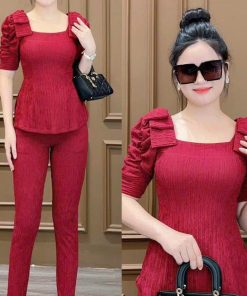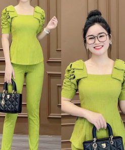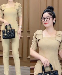 SET BỘ ĐỒ NỮ THUN XỐP ÁO TAY PHỒNG QUẦN DÀI ỐNG ÔM SA137 – SAM FREESIZE < 55KG