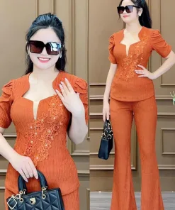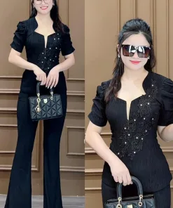 SET BỘ ĐỒ NỮ TRUNG NIÊN XỐP PHỐI REN BT888 – NANA FREESIZE <60KG