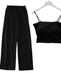 – Tên Sản phẩm: Sét bộ đồ quần chun đen + mix áo 2 dây bún chất tăm lạnh