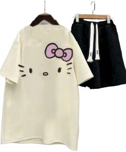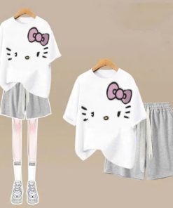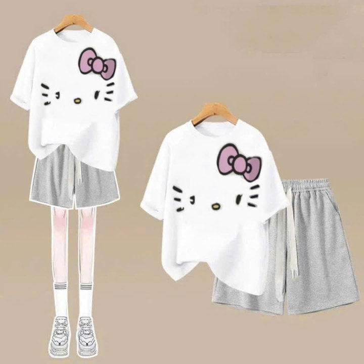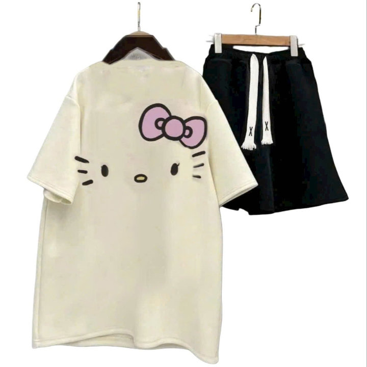 – Tên Sản phẩm: Sét bộ đồ quần cộc trơn + mix áo phông mèo đơn giản