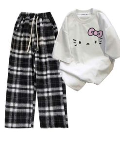 – Tên Sản phẩm: Sét bộ đồ quần kẻ Caro Bản TO đen + mix áo phông mèo ĐƠN GIẢN