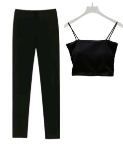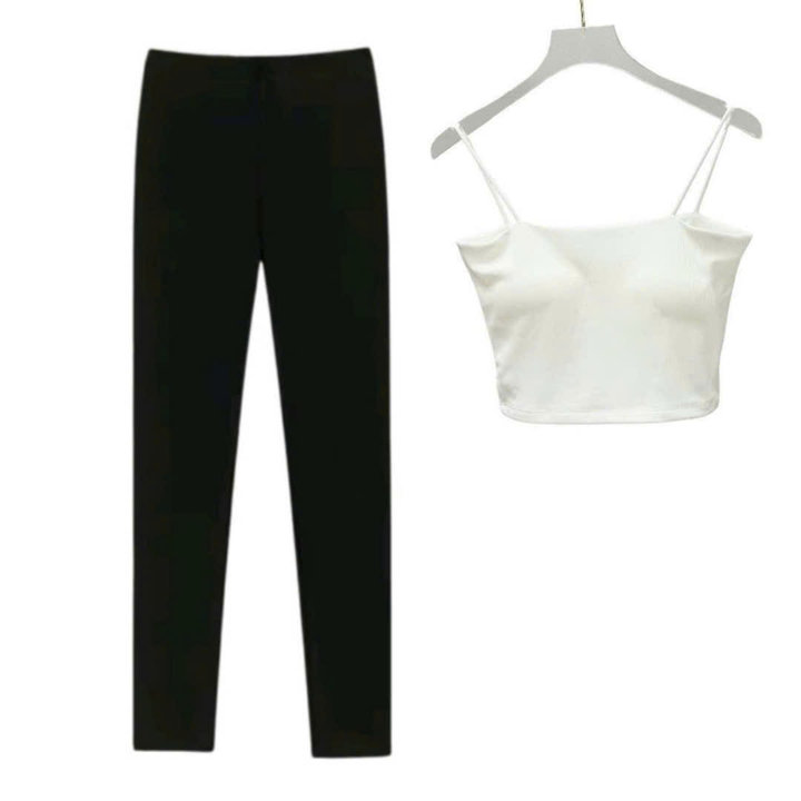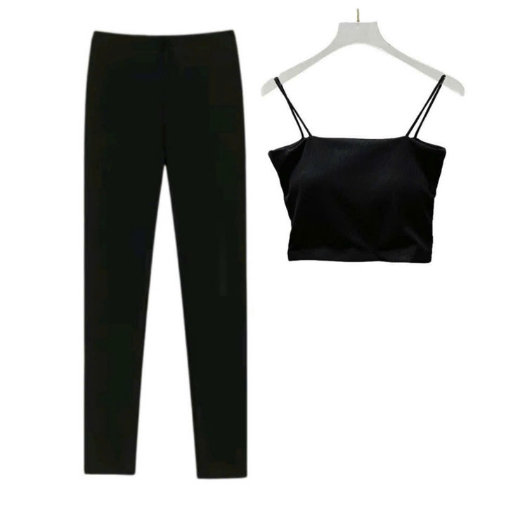 – Tên Sản phẩm: Sét bộ đồ quần leggging dài 95cm + mix áo 2 dây bún chất tăm lạnh