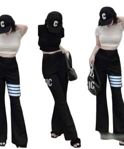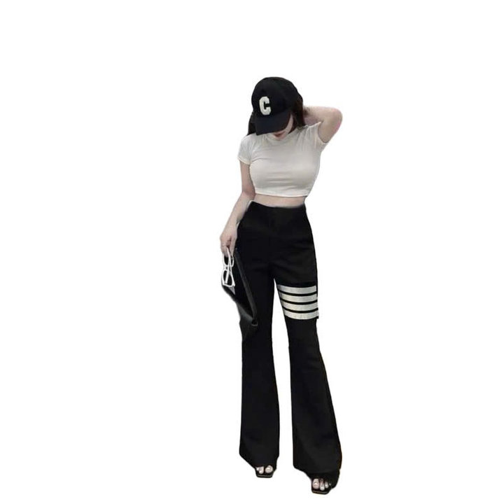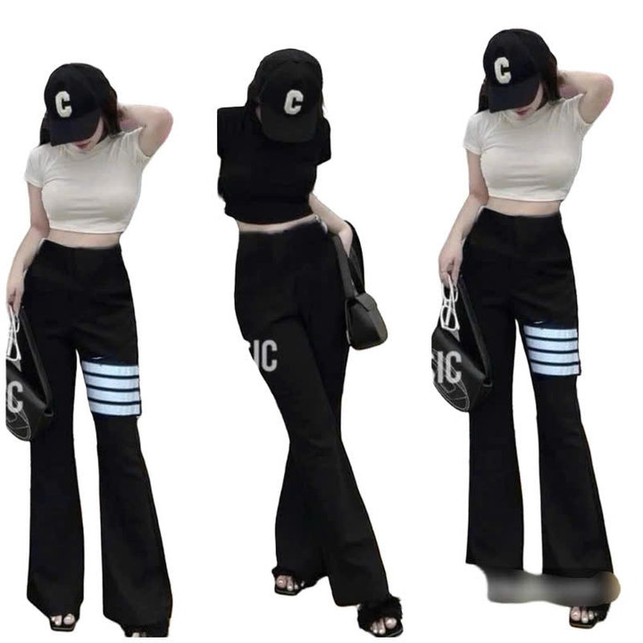 – Tên Sản phẩm: Sét bộ đồ quần ống loe cạp cao co dãn thoải mái + mix áo croptop trơn tăm lạnh form vừa
