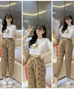 SET BỘ ĐỒ THUN NỮ ÁO CROTOP MIX QUẦN DÀI BO CHUN HOA TIẾT CHUỘT MICKEY BT207 – NANA FREESIZE < 53KG