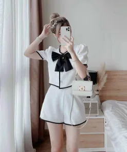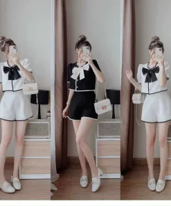 Tên sản phẩm: SET BỘ ĐÙI ÁO VIỀN KÈM NƠ TAY NGẮN + QUẦN SHORT T386