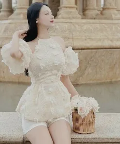 - Tên sản phẩm: Set Bộ Đùi Cổ Yếm Tay Phồng Cột Nơ Cổ TF110BD1050 – Tosatan
