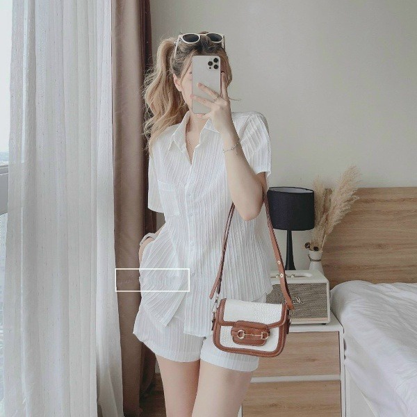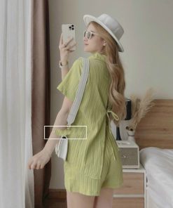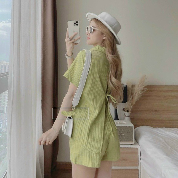 Tên sản phẩm: Set bộ đùi cột nơ sau lưng dịu dàng chất đũi màu trắng V70 – CLOUDY DRESS