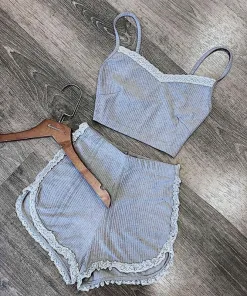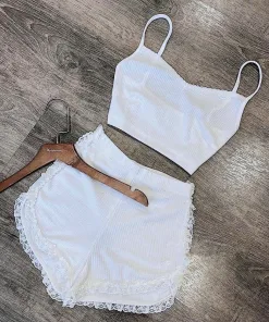 - Set bao gồm áo 2 dây dáng croptop kèm quần đùi mềm mại, thoáng mát.