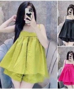 – Kiểu dáng áo 2 dây, trước ngục có viền ren tạo vẻ đẹp trẻ trung, quyến rũ