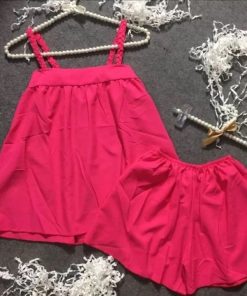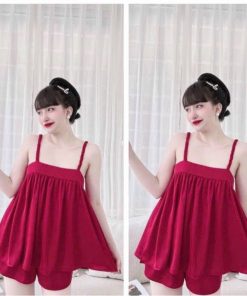 Kiểu dáng áo 2 dây, trước ngục có viền ren tạo vẻ đẹp trẻ trung, quyến rũ