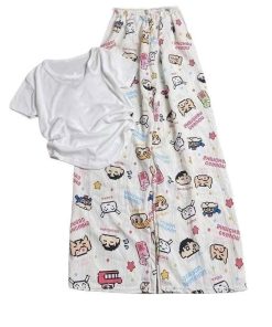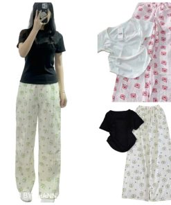 – Tên Sản phẩm: Sét bộ mặc nhà quần hoạt hình bút chì +áo thun tăm dáng ngắn Croptop trơn tăm