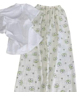 – Tên Sản phẩm: Sét bộ mặc nhà quần hoạt hình ếch xanh +áo thun tăm dáng ngắn Croptop trơn tăm
