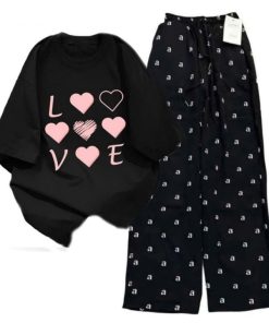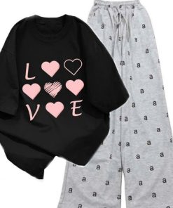 – Tên Sản phẩm: Sét bộ mùa hè quần ống suông chữ aaa dáng dài 95cm+mix áo phông form rộng tay lỡ – chữ LOVE