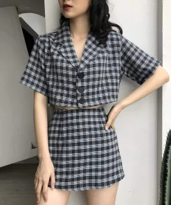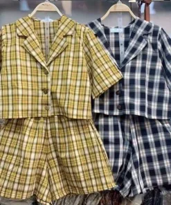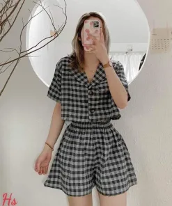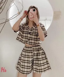 – Tên Sản phẩm: SET BỘ NỮ, Áo Croptop Vest Caro Phối Quần Ngắn Đùi Caro