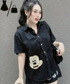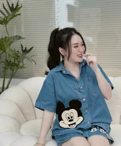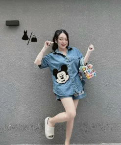 SET BỘ NỮ ÁO SƠ MI QUẦN SHORT JEAN MICKEY DD401 – NANA FREESIZE < 54KG
