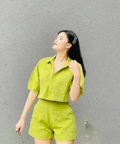 Set bộ nữ đũi quần short áo tay ngắn với tone màu năng động, cá tính.