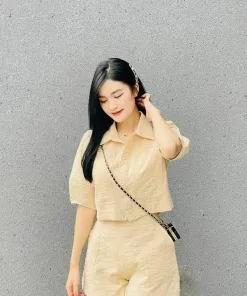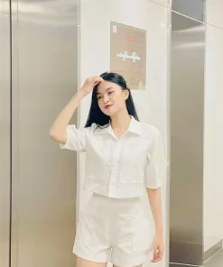 SET BỘ NỮ ĐŨI QUẦN SHORT ÁO TAY NGẮN CỔ SƠ MI DD905 – NANA FREESIZE <53KG