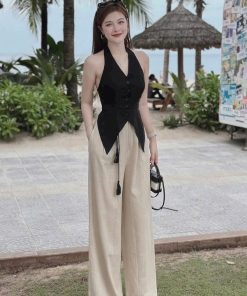 SET BỘ QUẦN ĐŨI ỐNG RỘNG MIX ÁO HỞ LƯNG BH90P- SAM FREESIZE < 53KG