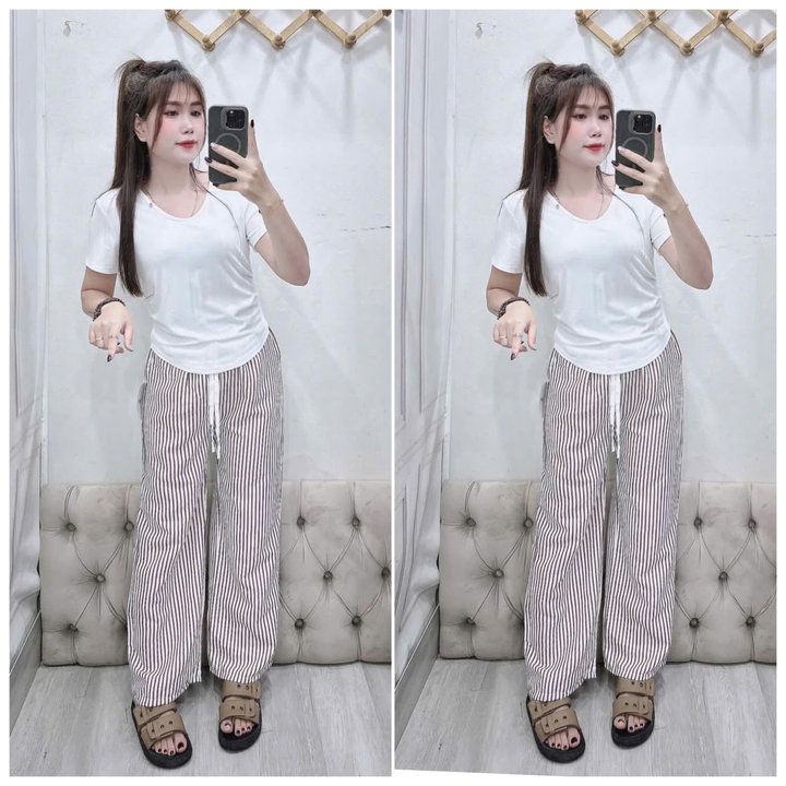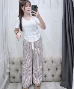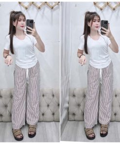 – Tên Sản phẩm: Sét bộ quần đũi xốp lẻ sọc vằn + mix áo phông cổ tim trơn form rộng tay lỡ chất cotton su