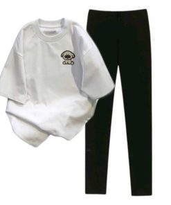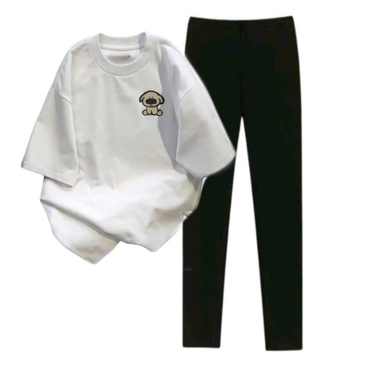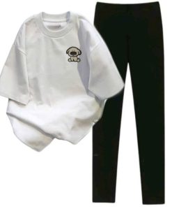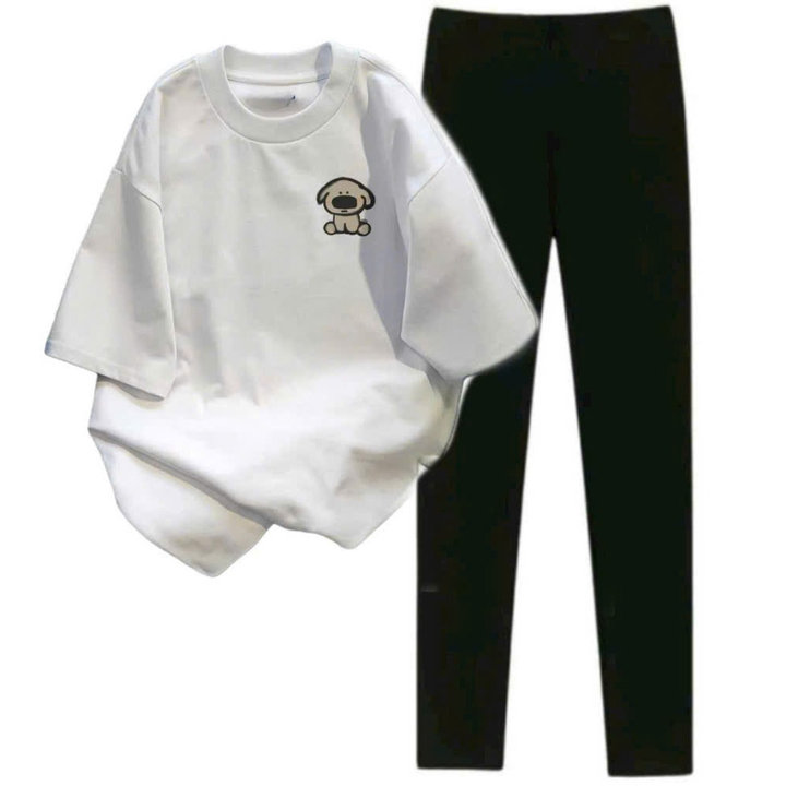 – Tên Sản phẩm: sét bộ quần legging dài 95cm + mix áo phông in hình cún nâu ở ngực
