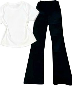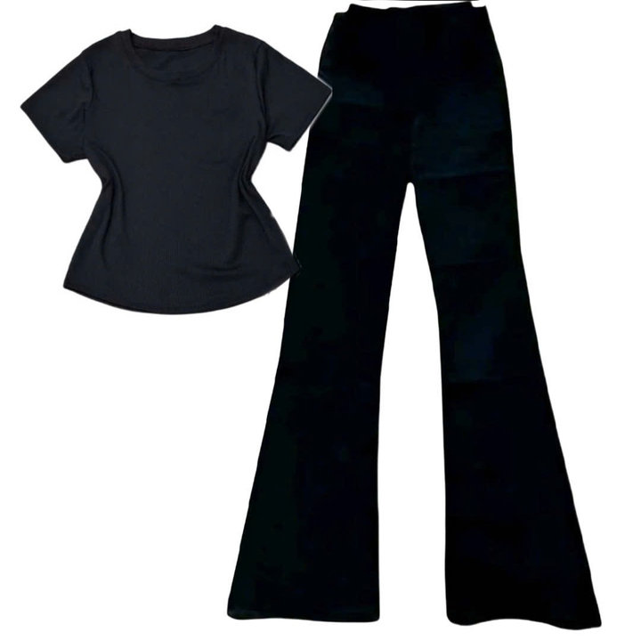 – Tên Sản phẩm: Sét Bộ Quần Ống Loe Cạp Cao tôn dáng + mix áo Thun tăm lạnh croptop trơn