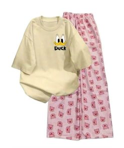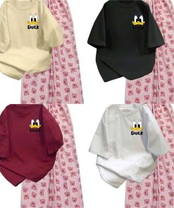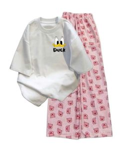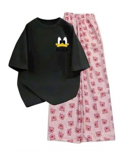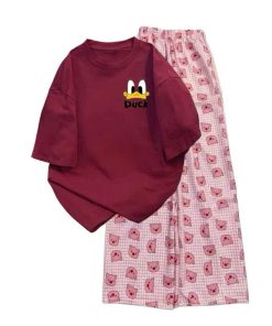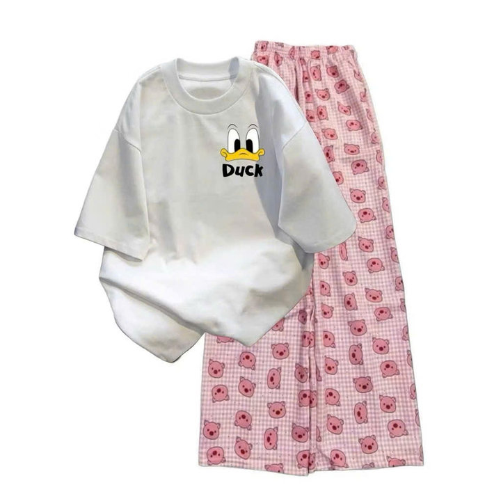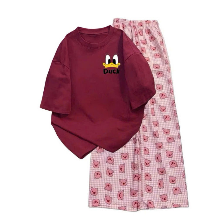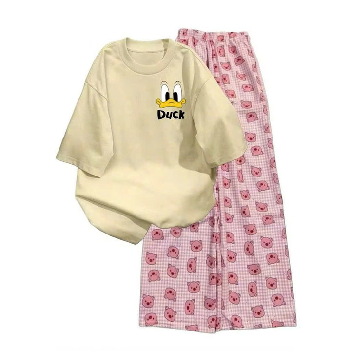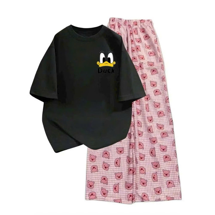 Mô Tả Sản Phẩm:Bộ quần ống rộng heo hồng+ áo phông