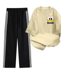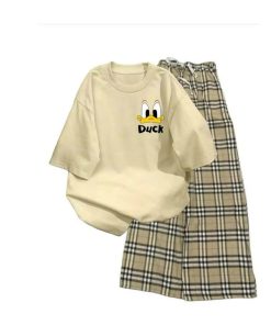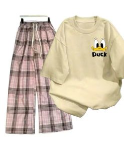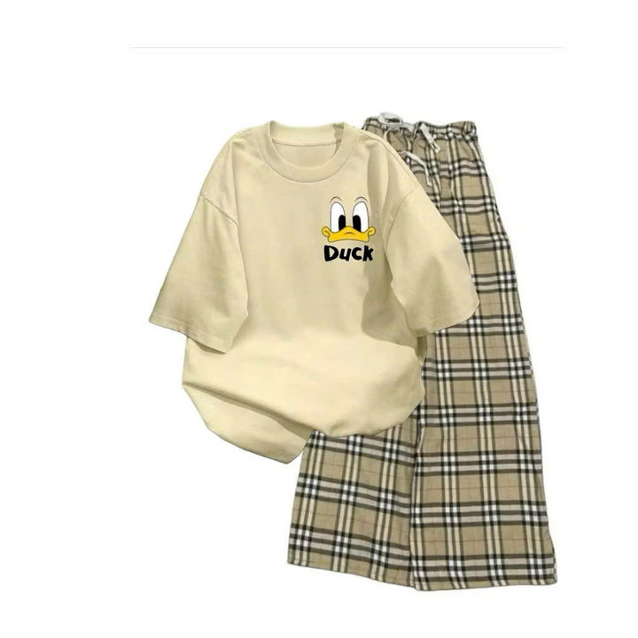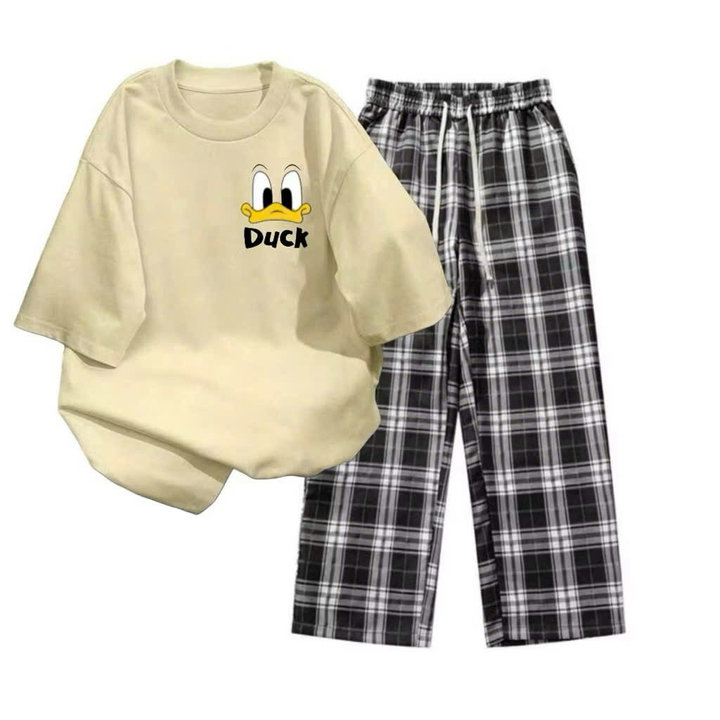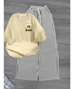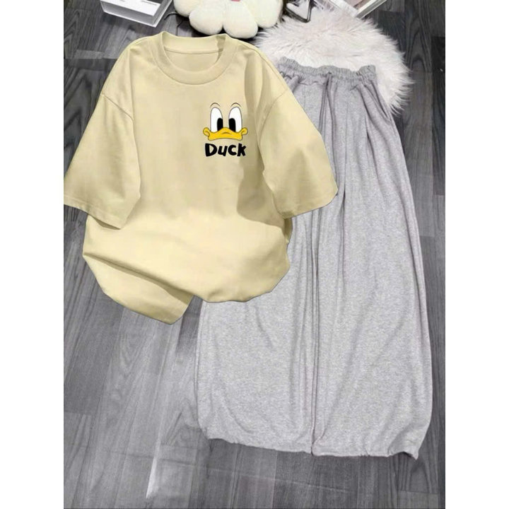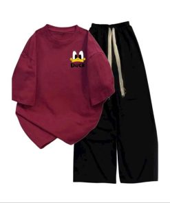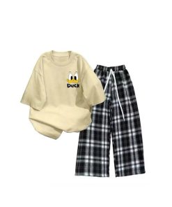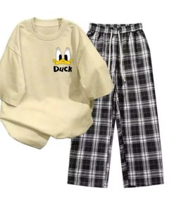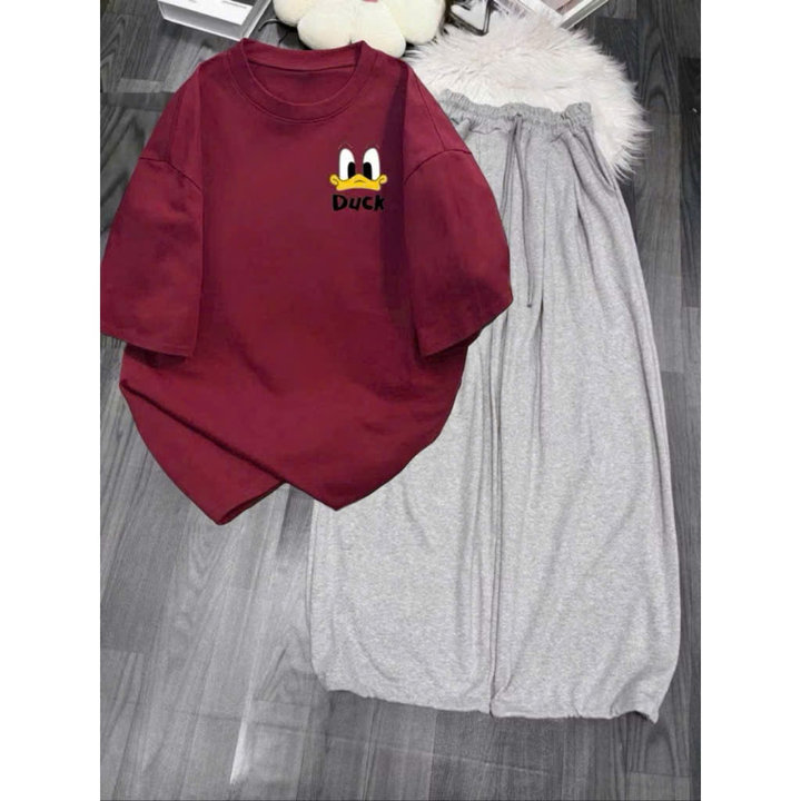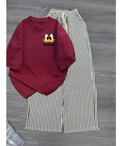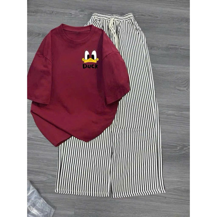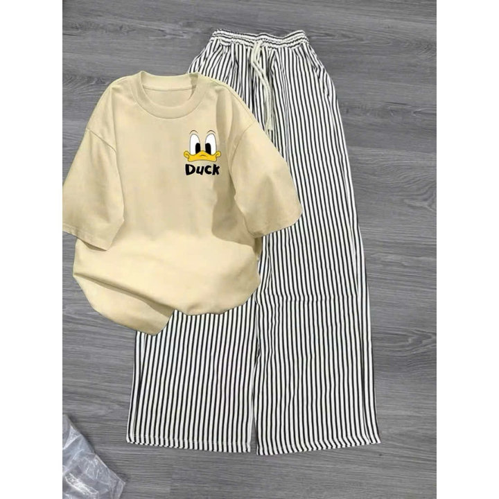 Mô Tả Sản Phẩm:Bộ quần ống rộng kẻ viền rót+ áo phông