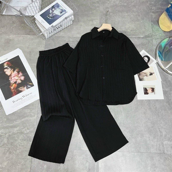 – Tên Sản phẩm: Sét bộ quần ống rộng + mix áo sơ mi nhung cọc tay