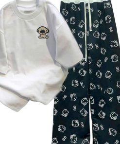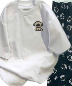 – Tên Sản phẩm: sét bộ quần quần mèo + mix áo phông in hình cún nâu ở ngực