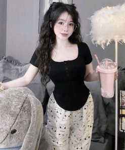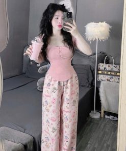 SET BỘ TĂM LẠNH ÁO CỔ VUÔNG QUẦN PHỐI MÀU BT87E- SAM FREESIZE < 53KG