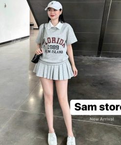 SET BỘ TĂM LẠNH PHỐI CỔ SƠ MI MIX CHÂN VÁY CÓ LÓT BH80H- SAM FREESIZE < 53KG