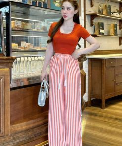 Tên sản phẩm:SET BỘ THUN ÁO CROPTOP KÈM QUẦN SUÔNG DÀI HỌA TIẾT – LÊ PHƯƠNG BOUTIQUE