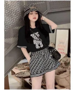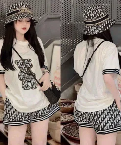 SET BỘ THUN NỮ HỌA TIẾT DIOR IN HÌNH GẤU FORM RỘNG SA690 – SAM FREESIZE < 55KG