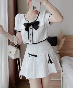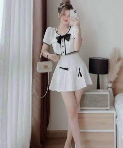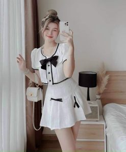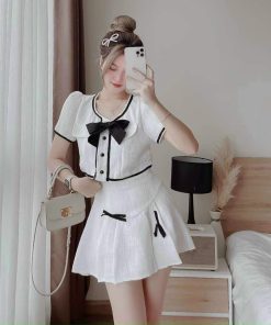 Tên sản phẩm: SET CHÂN VÁY CÓ LÓT KÈM ÁO VIỀN REN KÈM NƠ CHẤT VẢI XỐP T348