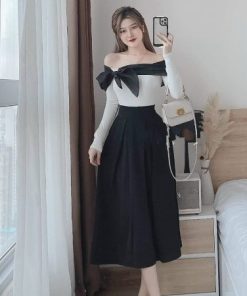 Set chân váy xòe xếp ly kèm áo tay dài phối nơ, đầm dự tiệc cúp ngực có mút ôm eo quyến rũ sang trọng.