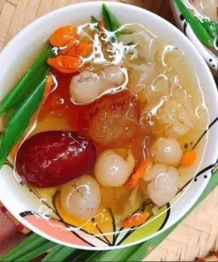 Nguyên liệu: Ký Tử Ngọt, Nhựa Đào, Tuyết Yến, Nấm Tuyết, Táo Tàu Đỏ, Đông Trùng Thảo