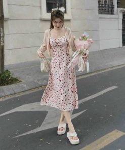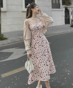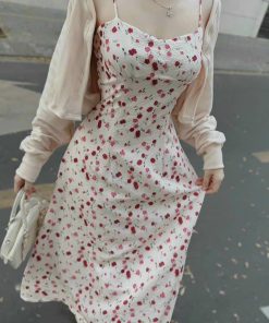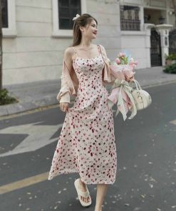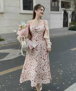 Tên sản phẩm: SET ĐẦM 2 DÂY XỐP HOA KÈM ÁO KHOÁC T1005