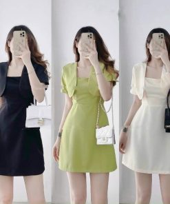 Tên sản phẩm: Set đầm hai dây kèm áo khoác chất for mềm V197 – HAKA MÂY