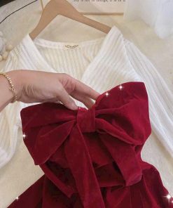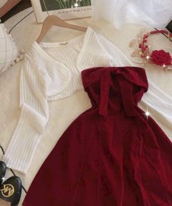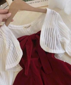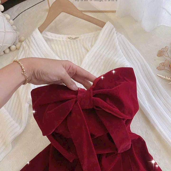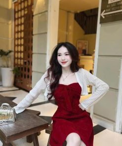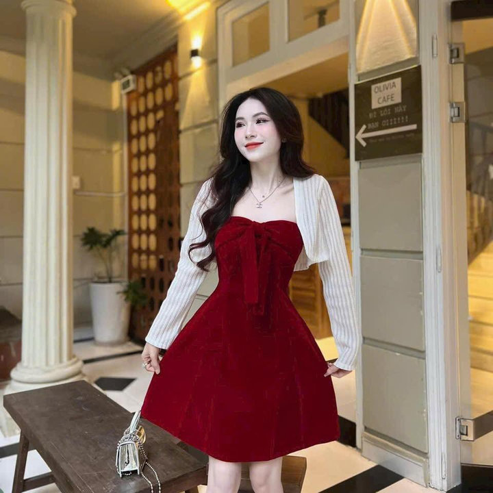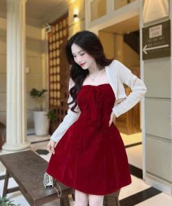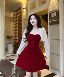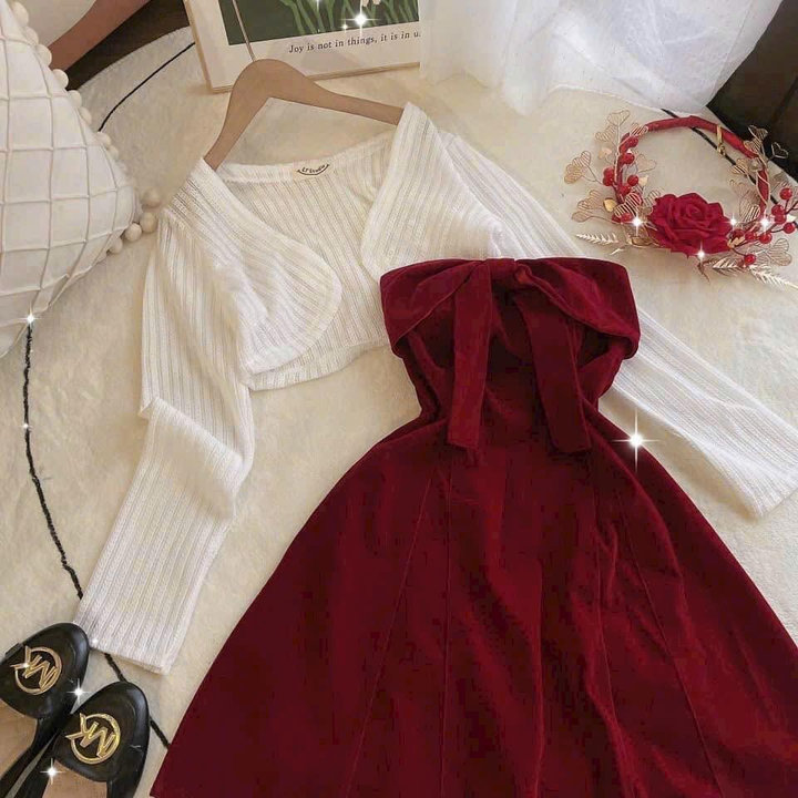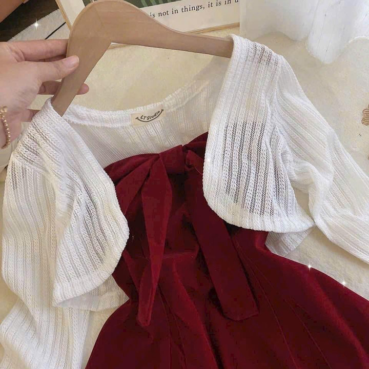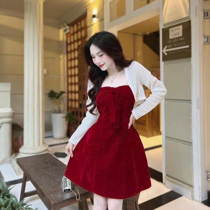 SET ĐẦM NHUNG CUP NGỰC KÈM ÁO KHOÁC REN BHT1036 – NANA FREESIZE < 53KG